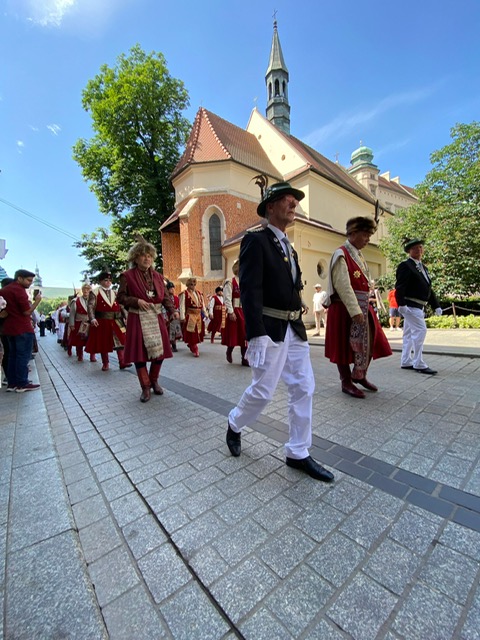 Warto dodać, że w grupie krakowskich braci kurkowych w procesji uczestniczyli także Roland Burmann i Wolfgang Rinschen z niemieckiego bractwa St. Andreas-Schutzenbruderschaft w Velmede-Bestwig e.V 1826, którzy przyjechali do naszego miasta w związku z sobotnią (01.06.2024) intronizacją króla kurkowego. Ta uroczystość rozpocznie się w Parku Strzeleckim o godz. 10, natomiast w samo południe odbędzie się ceremonia intronizacji na estradzie przy Wieży Ratuszowej na Rynku Głównym.