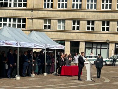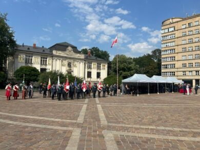 W programie uroczystości znalazł się również pokaz musztry paradnej w wykonaniu uczniów krakowskiego XXV LO o profilu mundurowym oraz prezentacja Grupy Zabezpieczenia Działań Małopolskiego Urzędu Celno-Skarbowego w Krakowie.